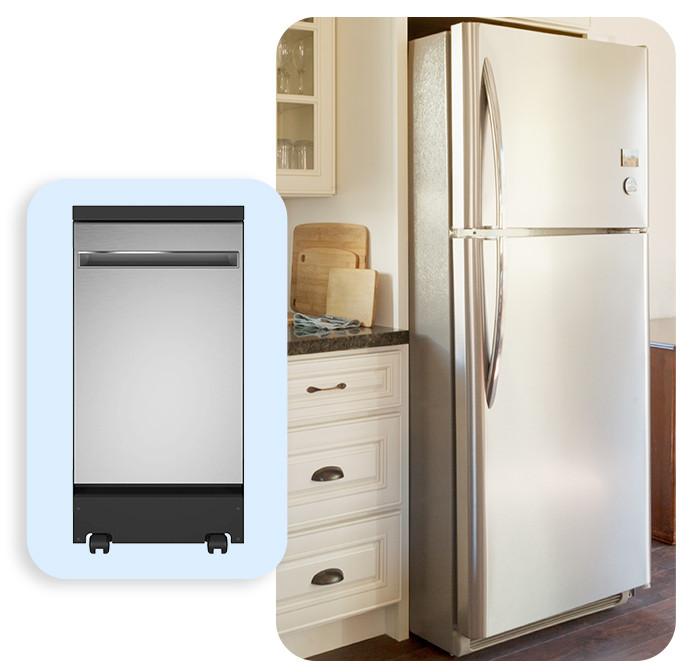 - Another way to save some space is to use a portable dishwasher. You'll be able to move it around as needed (hello wheels) and many of them come with laminate tops that can double as extra counter space.